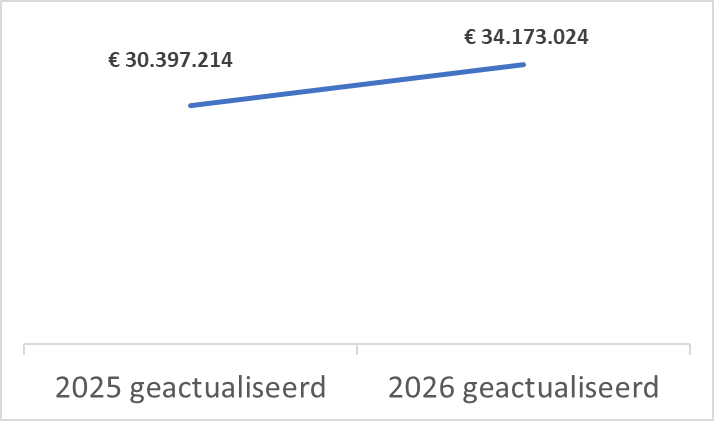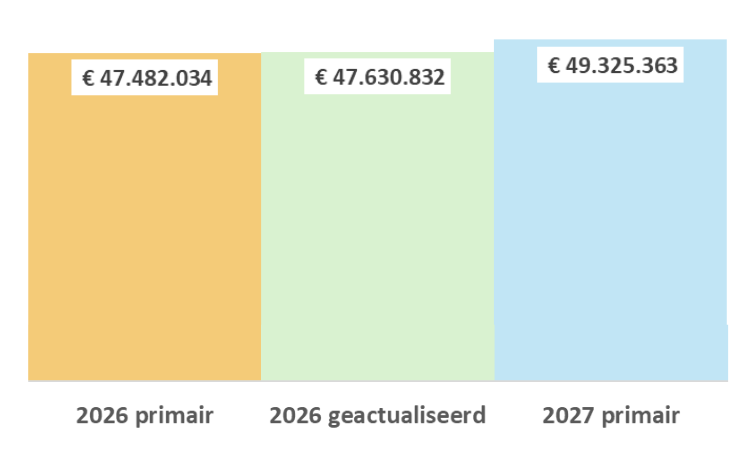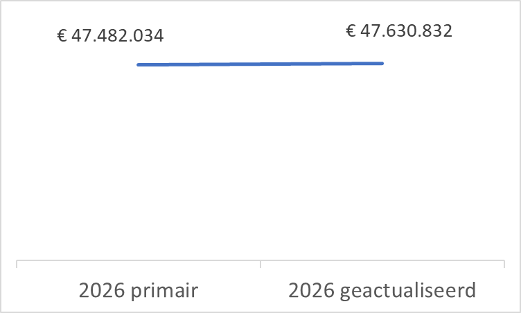 De geactualiseerde begroting 2026 stijgt minimaal met € 150.000 ten opzichte van de primaire begroting 2026. Dit komt vooral door: