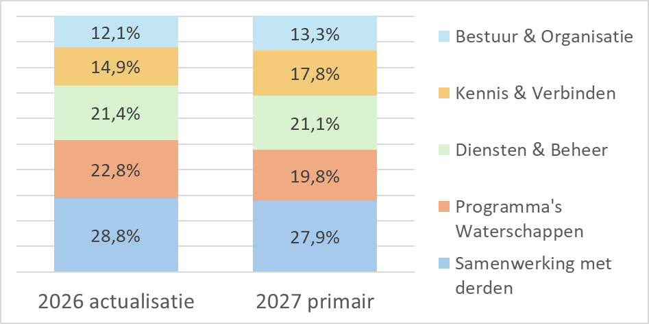 In de primaire begroting 2027 blijven de bedragen voor waterschappen en derden redelijk gelijk.